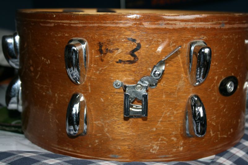 Secondly, can anyone identify what model this snare is? I'd guess it is a 3 ply mahogany, but I have no idea. Thanks for the help!