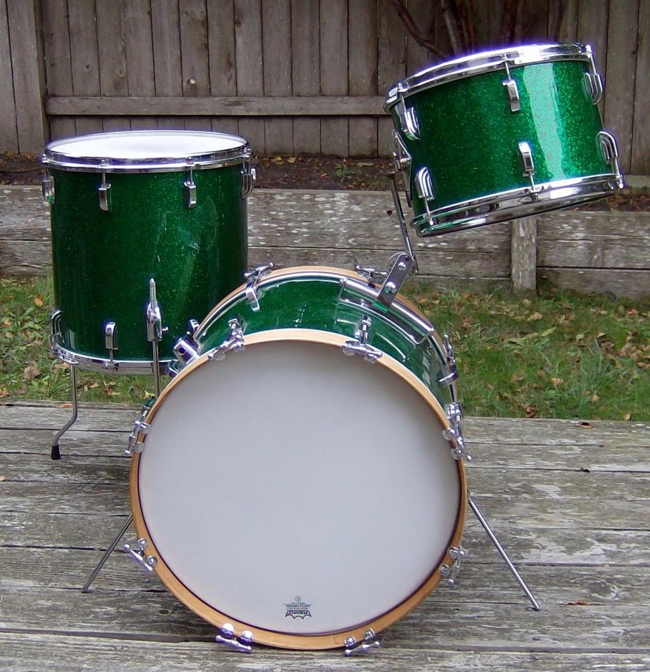 Looks nice either way! I like the way the SlingerLeedy kits kept the Radio King t-rods and claws on the bass drum all the way to their end in 1965. Of course, Leedy had the most beautiful lugs ever...