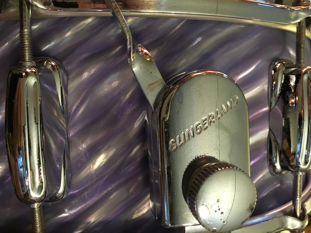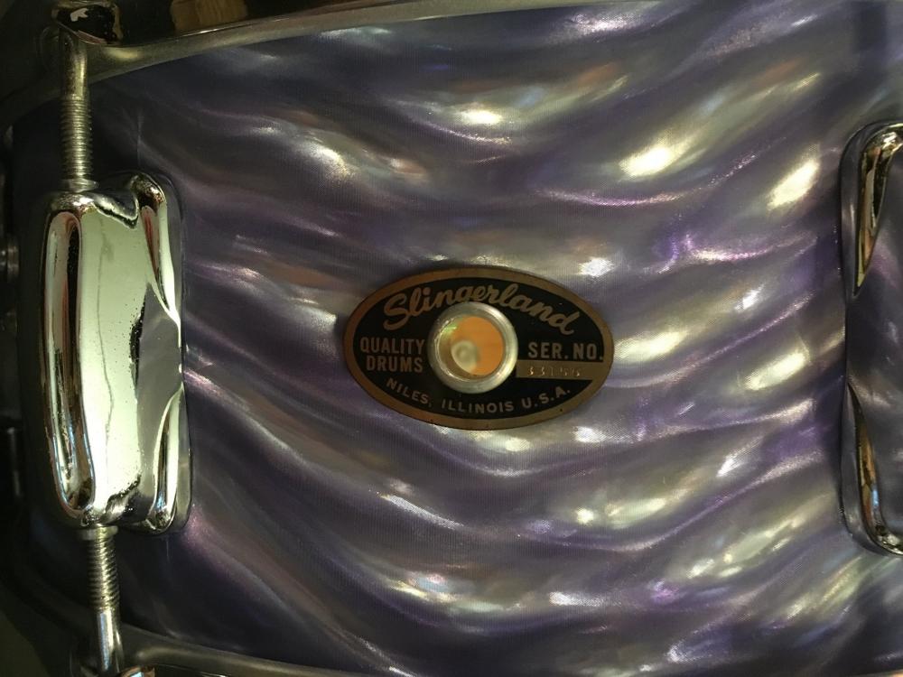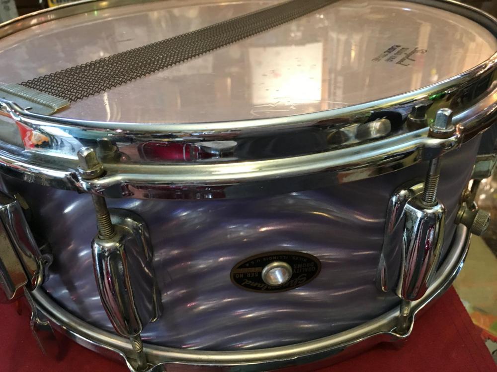All original in Very good condition. Wrap is bright, Shell is solid and beautiful and edges are excellent. Strainer works smoothly. Minor pitting a shown and looks like someone tried to clean the brass hoops with steel wool so some scratches.