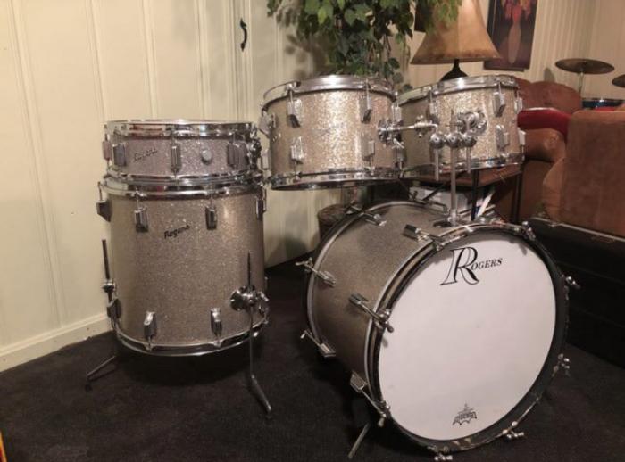 These drums came from Denny Phillips, who worked at Rogers HQ when it was located in Cleveland, where him and I still reside. I bought these drums from him 6 years ago, and I’ve loved them every minute I’ve owned them. Denny had these drums for years, I believe since they were new. He toured with these drums for years, and he’s told me stories about playing in clubs in Japan with this set. There’s quite a storied past with this set, and other than touring, it’s spent it’s life here at it’s home in Cleveland, OH. I’ve also gigged with this kit for over two years, and recorded with it with my band’s first album last year.