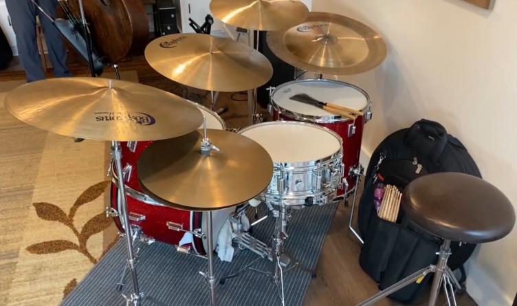 Second, my “shield” head (and unseen wood beater) were a part of my big band setup. Now I’m using the Fiberskyn w/felt beater to help me blend better with a piano trio playing Songbook standards.