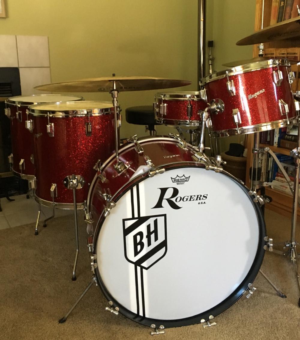 Thank you all. I’m blushing with pride over your generous compliments!! And for Mike, a little context, first as to BR configuration. I received this rig 6 or 7 years ago with the original double collets mounted on the bass w/straight hex cymbal rods and Swivo tilters. That’s part of the Constellation ID. But, I found I was reaching too far for my ride, whether 20” or 22”. So I mounted a nobby and L-arm to remedy my discomfort. The parts fit flush with no drilling. Also, I’ve seen Cozy pics with double FT's, but positioned on L & R sides. Likewise with Papa Joe and some of the other cats of the day.