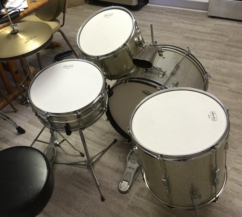 I'm the first person to have changed any drum heads on this outstanding 1966 Silver Sparkle Club Date drum kit from 1966! Excellent condition (a bit of wear on the bottom bass drum hoop is the only blemish.) Sizes are 20, 14, 12, 12. The original second tom is included. This drum set sounds incredible!