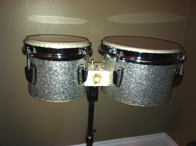 Here is a pic of the bongos. I think the heads are original and the finish is nice except for somebody put some tape in the form of 2 x's on them and it has left some faint marks. They also have the original stand. Serial is 231XXX.