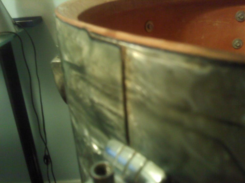 The photo is a little deceiving but I'm pretty certain that's a maple interior ply that has gained some patina through exposure to the elements. With the wrap in proper order, no worries on this one. I have the same kit and as John, (Purdie Shuffle) once pointed out with mine and his own kit, the wrap has correctly faded, taking on a nice charcoal look. Pretty sure its not a re-wrap.
