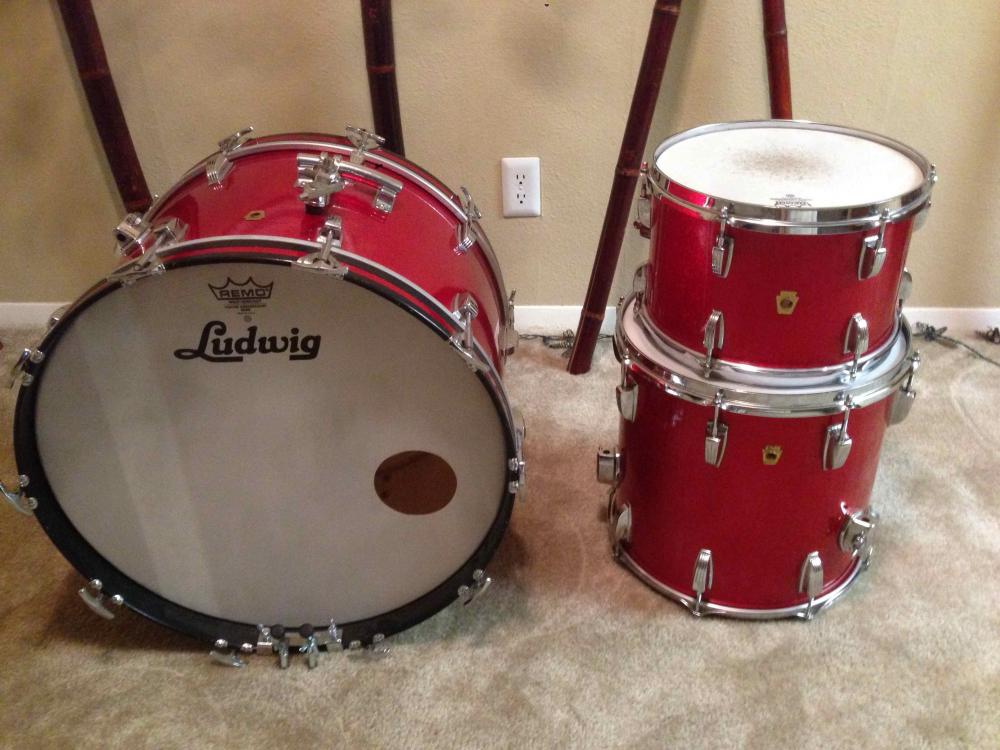 1969 Ludwig Red Sparkle 22, 12, 14. All original