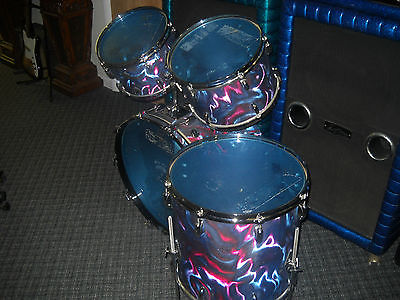 I just replaced the heads. When I received the drum kit, it was missing one of the kick drum hoops, so I replaced it with a Gibraltar plain black one. The original one has the inlay so it's a little mismatched, but i'll include a matching satin flame inlay strip if you want to use a router and make it match.