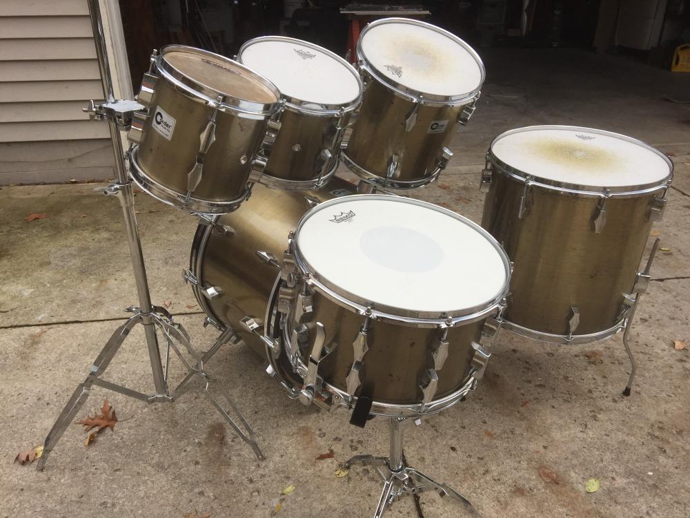 Hello everybody :-) I have a 1979 Coder 5 piece in brushed brass that was custom ordered by my uncle new in '79. He doesn't play anymore and sold it to me, but this kit isn't really my style, so I've been thinking of trading/selling it. Sizes are (diameter x depth): 8x8, 10x8, 12x11, 16x16, & 22x14. The snare pictured with the kit has sold separately & is no longer available. I do have a 6.5x14 COW Corder snare as well. It's just the shell, lugs, and hoops. I can throw that in as well if you are interested.