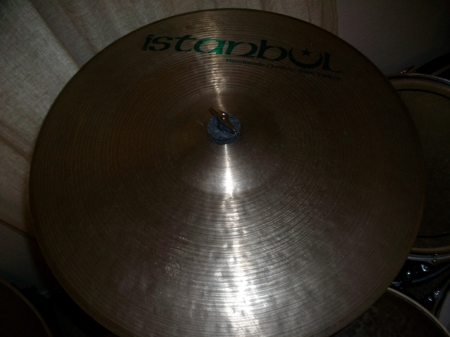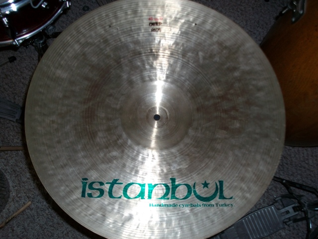 I bought this 19" Pre-Split Istanbul ride from another member here a few months ago. This thing is so sweet, but I'm really in need of a good crash and I'm more attached to my Bosphorus ride than this one. Perfect shape, beautiful hammering, no cracks, keyhole, warping, flea bites or any other funny business. Production date is stamped 1991, no signatures are apparent under the bell. 2 factory installed rivets make this thing sizzle for days! I don't have a scale, but I'd put it in the upper medium lower heavy range, typical of the pre-split istys. Its about the same as my medium 20" which is just over 2000g. Great stick definition with dark trashy overtones. This cymbal is a fantastic ride, but does not work well as a crash, so keep that in mind. Great for a left side jazz ride, thats how I was using it.