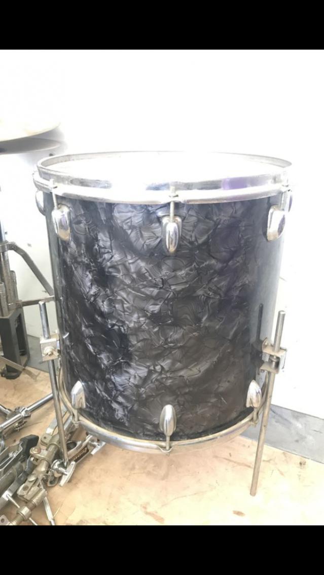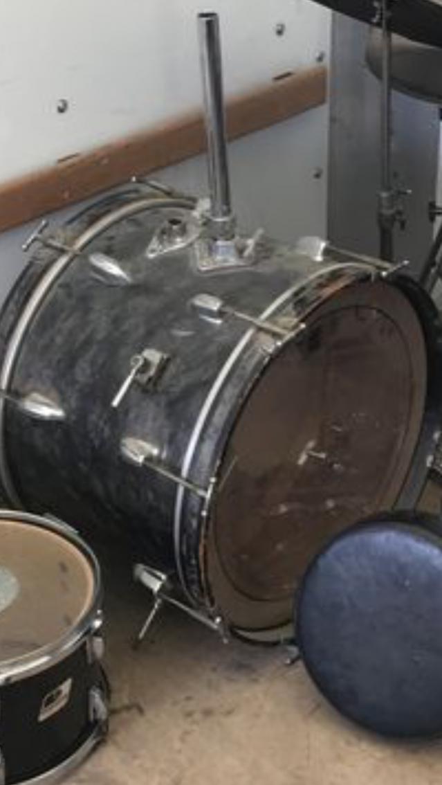 I stumbled upon an unidentified kit online that I’m considering purchasing for a project/gigging kit. I’m thinking it may be a Slingerland due to the lugs, but I’m not so sure I’ve ever seen a bass drum with 3 reinforcement rings.
