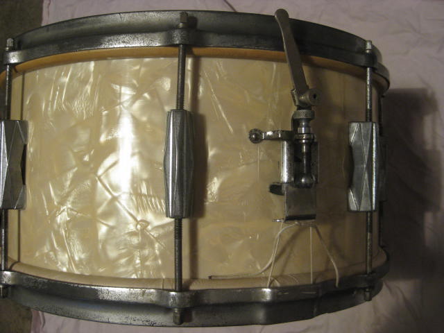 I'm trying to get an idea of the value of this late '30s Broadkaster that a friend of mine is offering in trade. It's a 14 x 7 WMP with a little yellowing, and some of the chrome (or nickel) rubbed off to the metal underneath. I'll be playing the drum, so as long as everything works well, I don't mind.