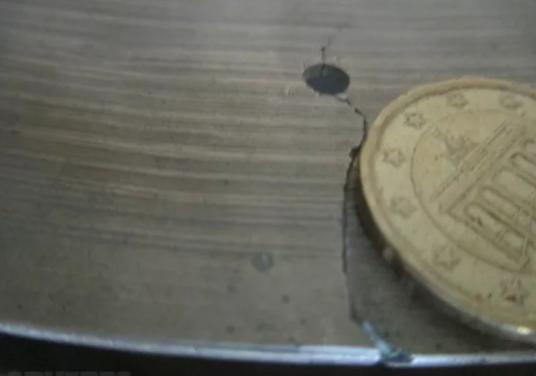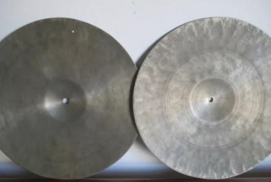 Some damage to top cymbal. Crack has been drill stopped, but whoever did it wasn't very accurate. It will require a proper repair. There is no rattle/ buzzing sound. They sound very clean.