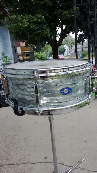 For sale is a 60's (stamped MAR '64), vintage Leedy snare drum, in a sky blue pearl finish. The finish on it is in great condition, however because of an after-market strainer and butt plate, it has some extra holes (see pictures). Everything else (besides snare strands) are original.