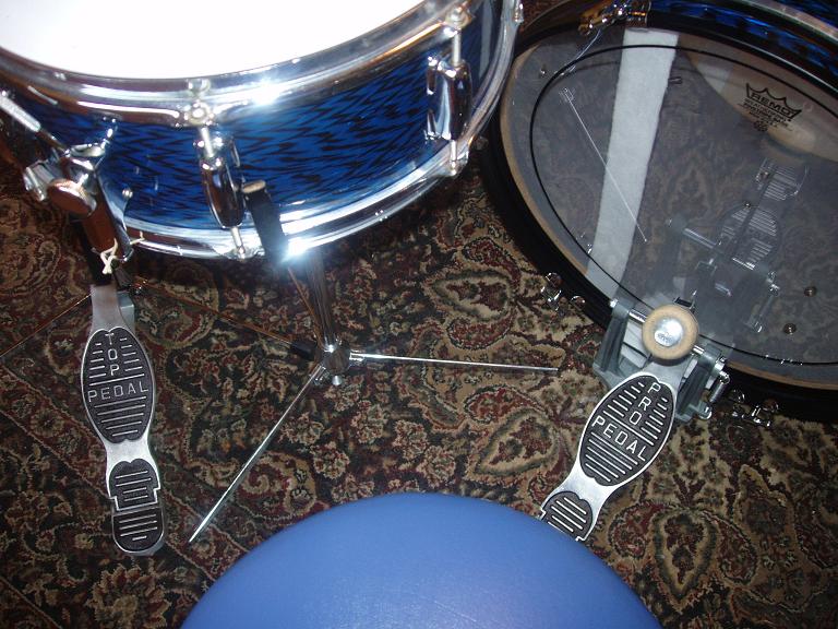 An 'Audition' 4 pc with the same pedals in blue sparkle
