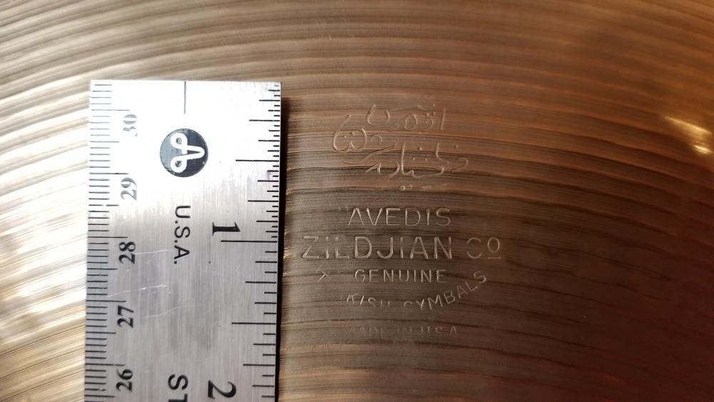 The stamp on yours is the 1.5" tall version of the 1960s stamp (60s tall) rather then the 60s short in that other thread. I picked that up from the quirks in the way it is pressed in, but that's not as accurate as just measuring the height. Since you also measured yours that confirms a 1.5" 60s Tall Stamp. This doesn't make a difference to expected value, but I do try and distinguish them for research purposes because there is a theory about the 1.5" tall version being later 60s. This theory predicts certain correlations with other cymbal attributes.