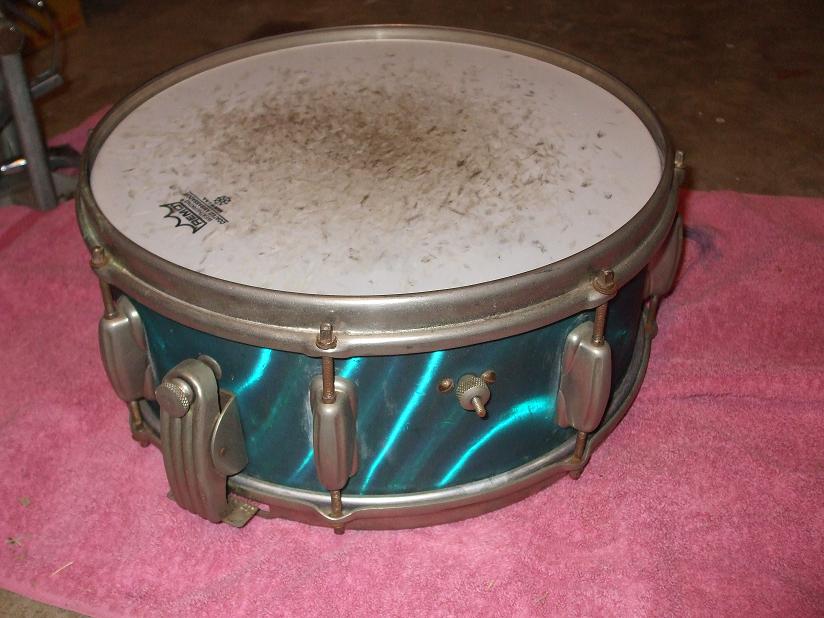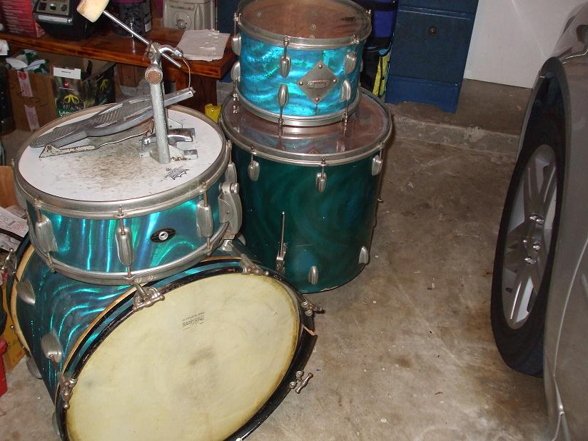 Is it the pic or do the other drums match the same color? but this wrap was available from 1964 to 75 and the leg mounts on the floor tom are wrong as is the mounted tom. I think it was a ludwig ludwig or ludwig leedy shell? I would need to see inside the snare shell to say for sure if it's a solid shell.offer $300.00