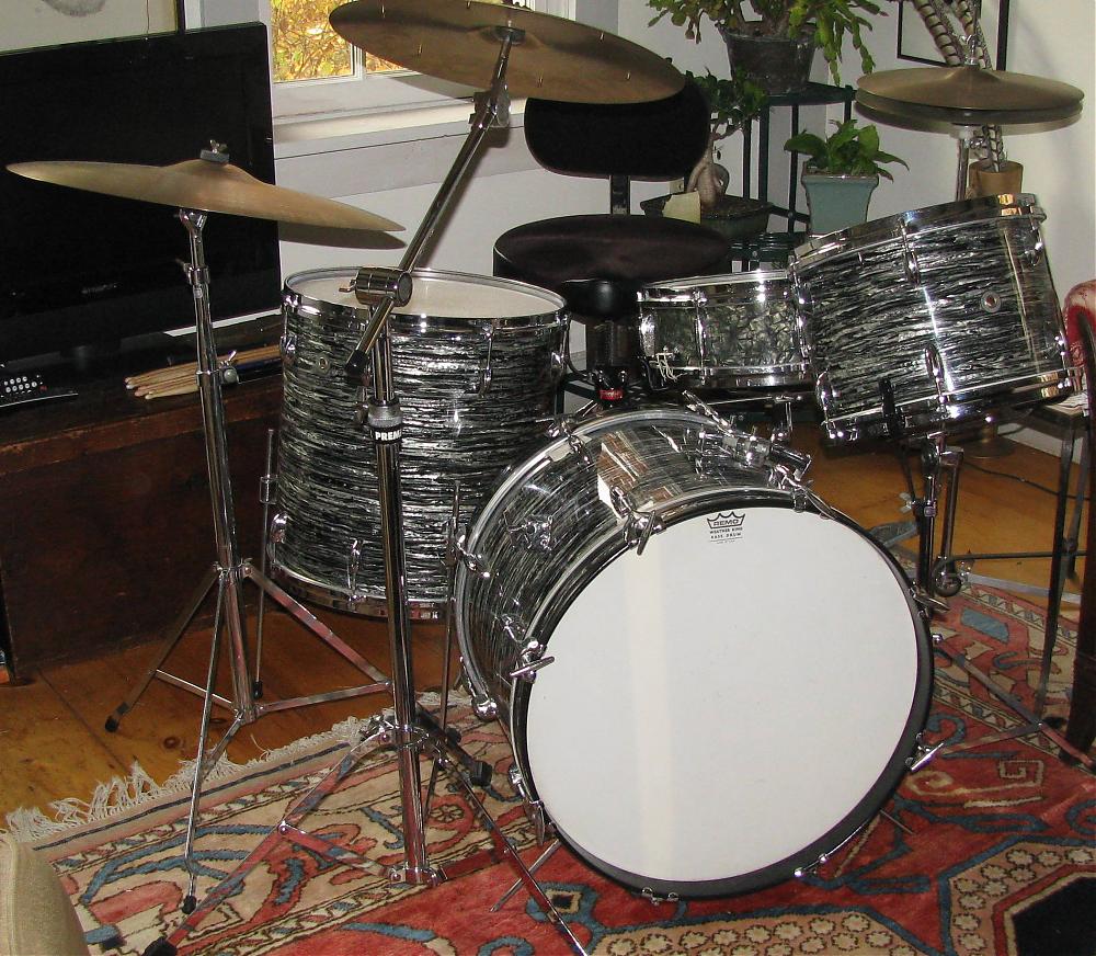 Thanks BigE! I'm quite proud of it. I had a blast searching for everything: cymbal stands, bass pedal, h/h stand, snare stands, throne, that lovely little snare and a few miscellaneous items. Cleaning and polishing everything up and then putting them all together to make something special was a very gratifying process. So even though that snare is not original to the kit like the other 3 drums are, I have a real soft spot for it. I feel I rescued it and gave it value. A very nice guy that I met at the CT vintage drum show had it in storage. It came to me dirty, a little rusty, with missing parts and wrong parts and not totally functioning (throw-off was quite bent and wouldn't stay in position). With help from a drummer friend of mine in RI it now has all vintage correct W&A parts on it, shines and functions like new and sounds unbelieveable! Who knows what might have happened to it otherwise. I'm not sure there are that many other people who would had cared enough to spend time and money searching for such obscure parts. A real piece of American history saved- and being played!