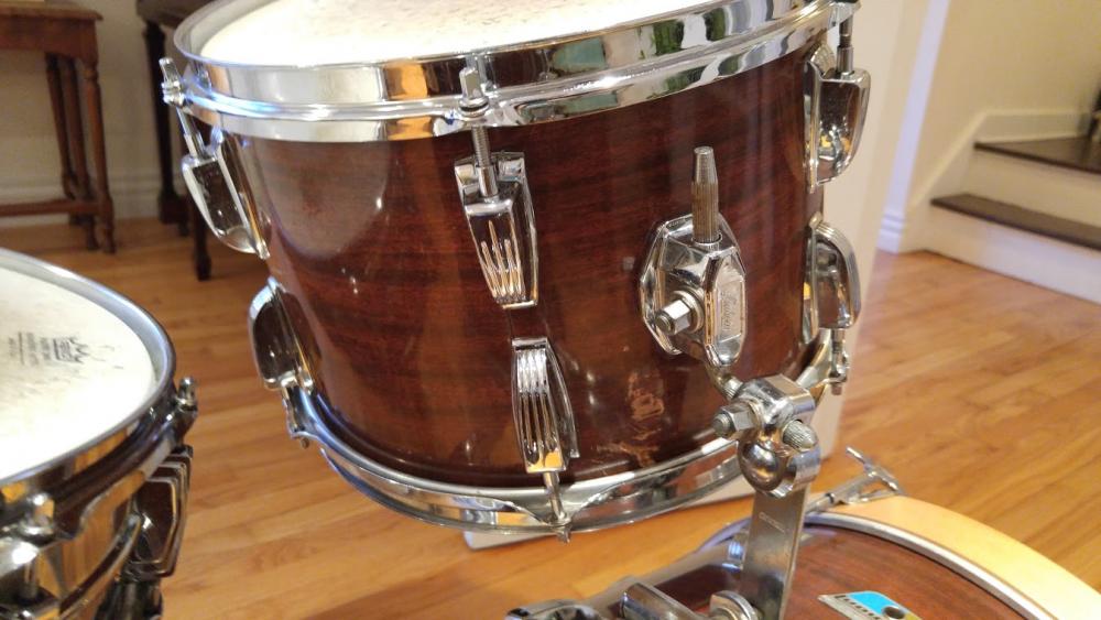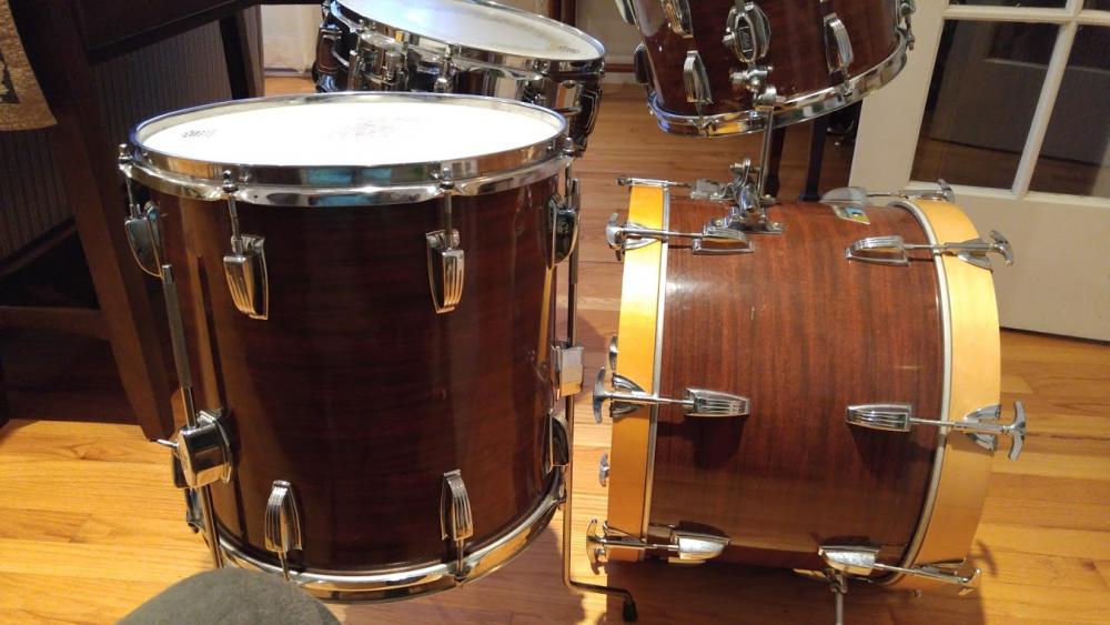 The serial numbers indicate the kit was made in the mid - late 70’s, but it has the 3 ply shells with rerings and clear interiors usually associated with drums made earlier in the decade.