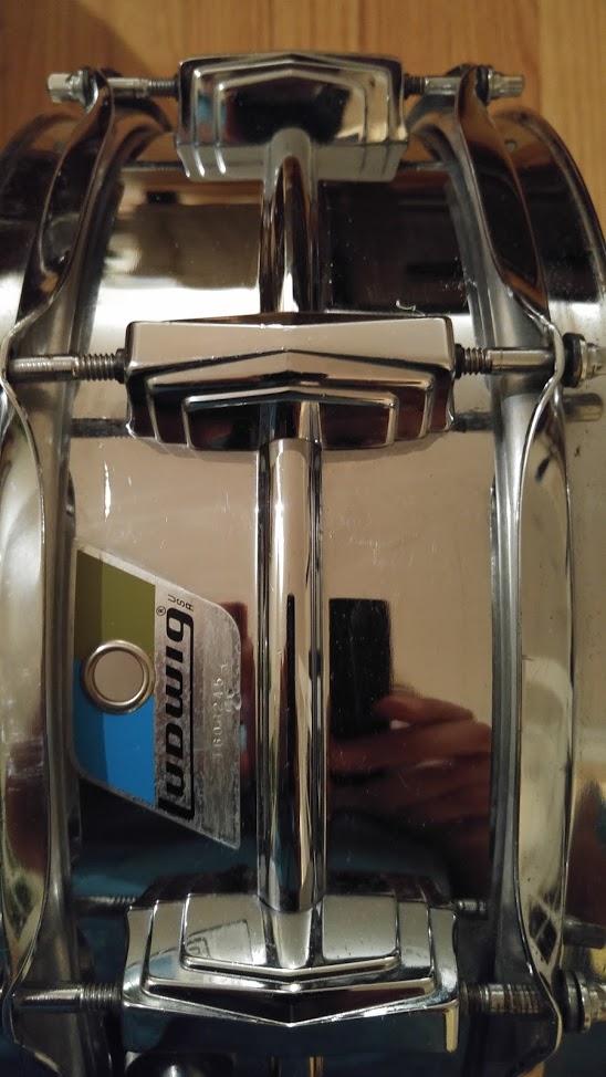 Seller informed me that the resonant side hoop is a replacement as the original was not with the set when he bought it. T rods and claws are original. Hoop is a very close match to the batter side. This is apparently original, though the clear maple finish is not what’s shown in the catalog. It does look great with the Mahogany cortex, so perhaps was a special order?