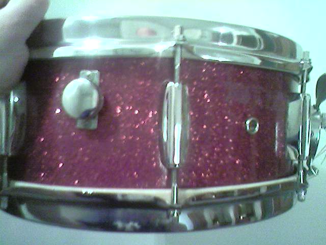 thanks for the info jonnis.i wasnt sure myself but i just guessed because the drum looks like its been in an attic since a month after it was new that the remo heads were factory. there are no snare beds. this 16" 8 lug blue sparkle floor tom was with it and i couldnt leave it there without its little red friend...... imagine that..... two orphan drums torn apart by one mans game of picky choosie. but i really just wanted too show the "mica swingline" head. since the topic of odd mij stencil heads came up. is this one a tama? swingline kinda sounds tama-ish.