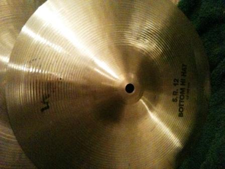 12" S.R. (Special recording) Bottom Hi Hat- a bit rougher condition. I have cleaned this but it still has tarnish/discoloration from exposure (to what I don't know). Sounds fine (for a bottom HH cymbal) would pair nicely with a 12" splash for a studio hat... The matching top cymbal is on the bay from time to time (for too much money), but this appears to be the first generation of these, without the "Avedis" printed above the "Zildjian".