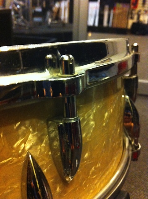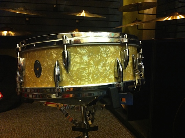 I saw one today for $150. Its 5" birch shell. Should I? Or is it worth less? Very light drum covered with what looks similar to marine pearl. Condition is good with no pitting. Premier type tuning screws and what look like die cast hoops. Narrow snare wires....maybe 12 or so.