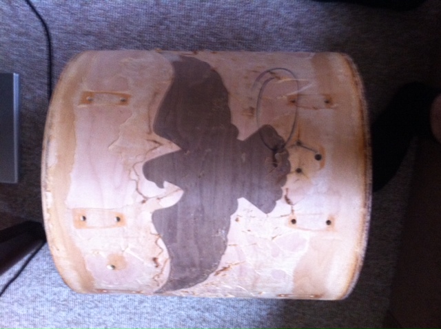 So I just unwrapped that trashed early 80's Ludwig kit I just bought, and under the floor tom wrap.....a freaking huge eagle in mahogany in the outer ply! What the heck is this? Was it supposed to be some civil war marching tom or something but then they just turned it into a floor and threw it with a kit? Anyone ever seen anything like this before?