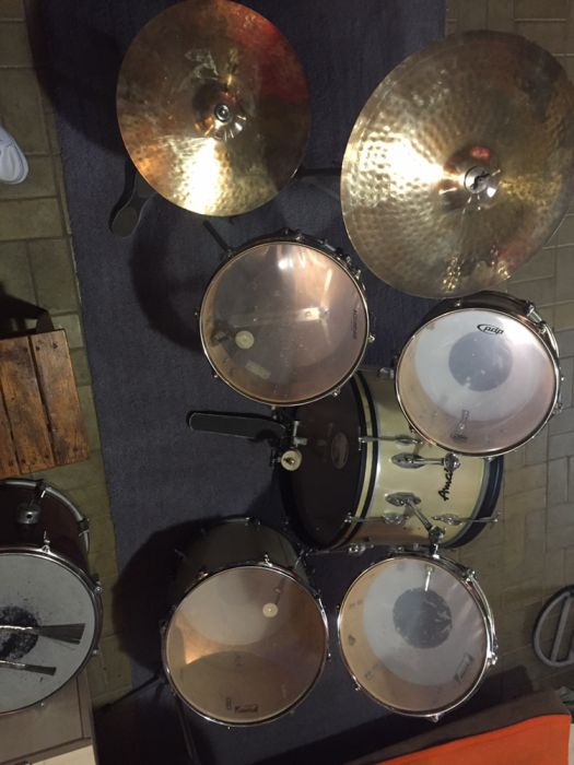 Something I did not manage to upload photos last time.The original was five drums, three plates and three plastika.Ostalnoy plastic was American proizvedeniya.Otsutstvovalo one leg of a large drum, and one leg was deformed. All the racks were from other producers of drums. There were no four mutes on the big drum and volumes.It was a transitional model from old amati to super-amati. The hardware was still from the old model and the drum cadre was thick-walled.