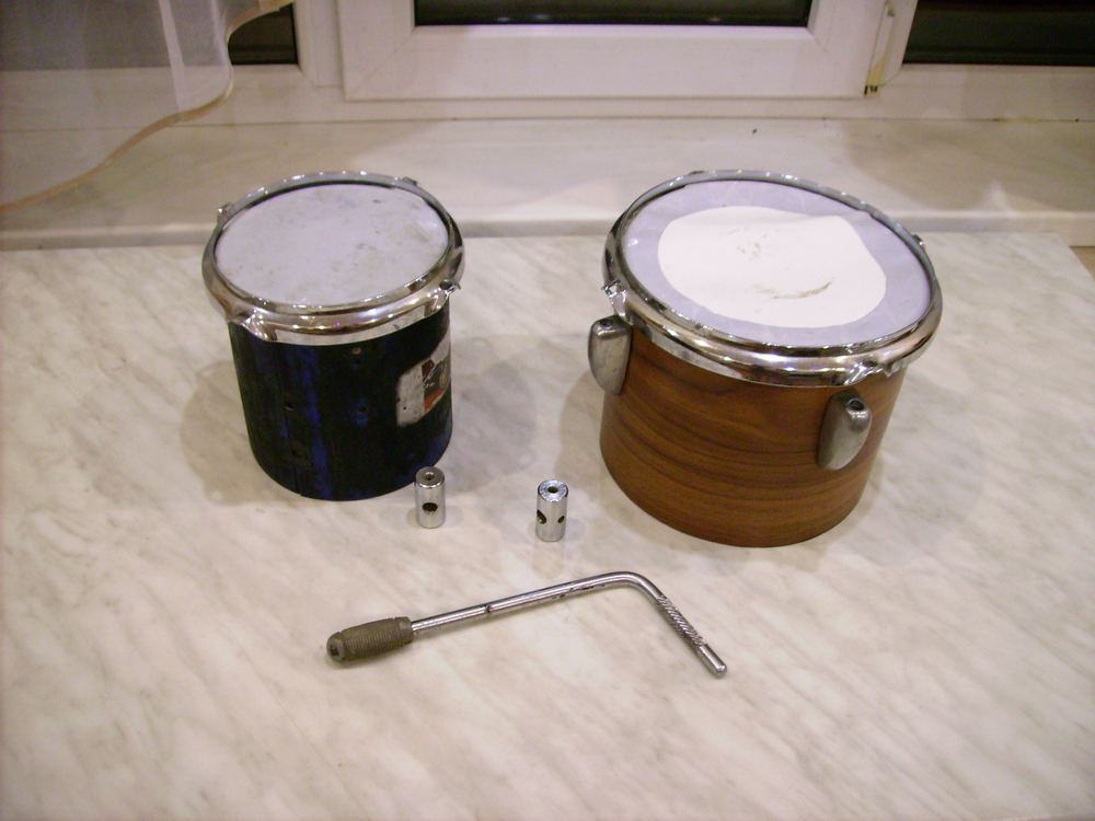 The search for components to the drum set brought me again to Odessa, where I bought bongos from Super-Amati and the missing leg for a big drum.The fact that I bought bongos from the super-amati and not from the Amati-Kraslice, I understood only after receiving the parcel and when I removed the pasted film from the case of bongs. In fact, the drum cases did not differ from anything except for the plastic inscription of amaty.No else on the purchased drums were missing Original ears and bolts