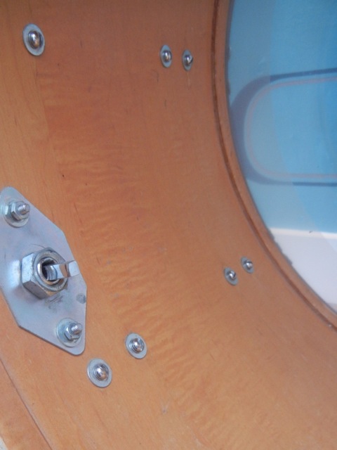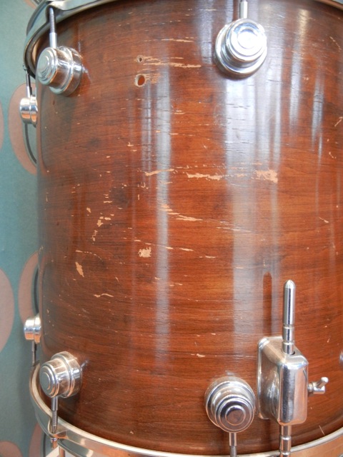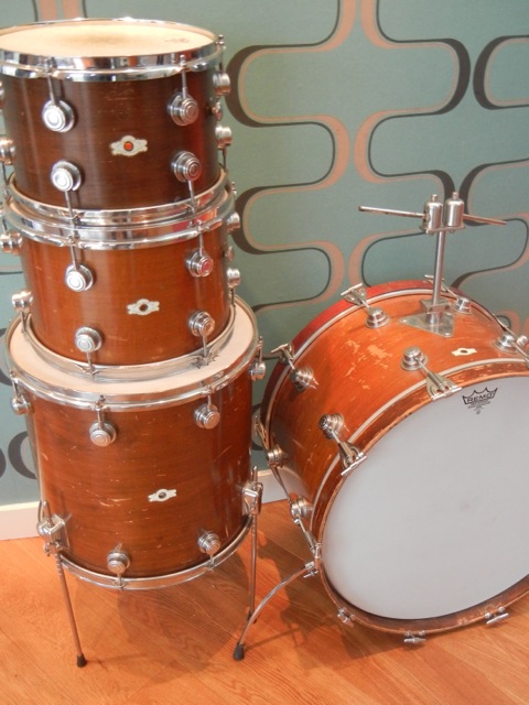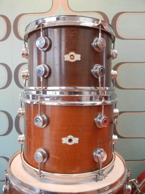Lots of parts doesn’t seem original. 1 BD-hoop, a couple of hoops on the 12” and 13”, lots of t-rods, 1 tom-mount, 1 tone control and some wing-nuts.