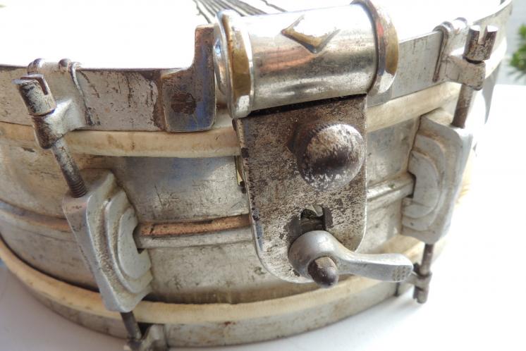 Well... Not sure. It looks like tapped 1935-36 L & L Imperial lugs but the slotted screws tell me European. It's interesting if those lugs are copies of the Ludwig tapped lugs of the 1935-36 era as they would have had a better option of using lug inserts ala Leedy. The shell also has that angled bead to accommodate the notched "Imperial" lugs. Is there a way to check if the attachment screw etc are metric? That would be tell us more. The collar hooks also look European. And there's that weird strainer...just the type of quirky snare that fascinates me. Those are my thoughts.