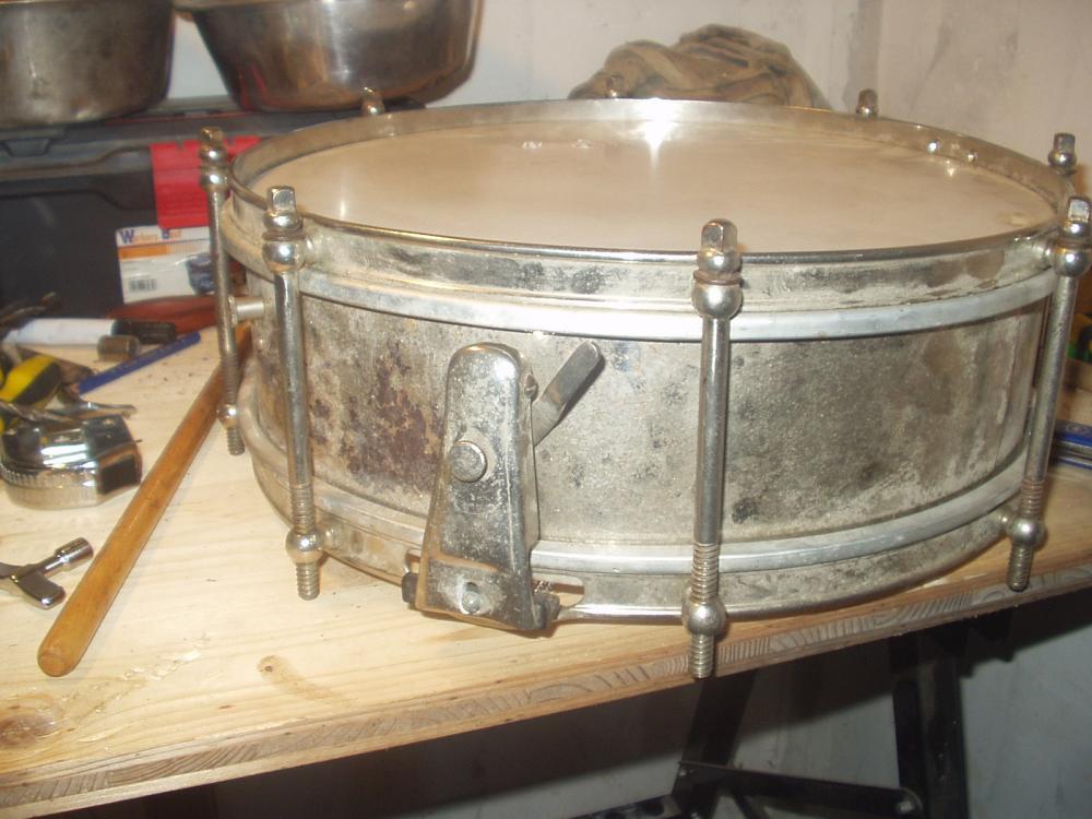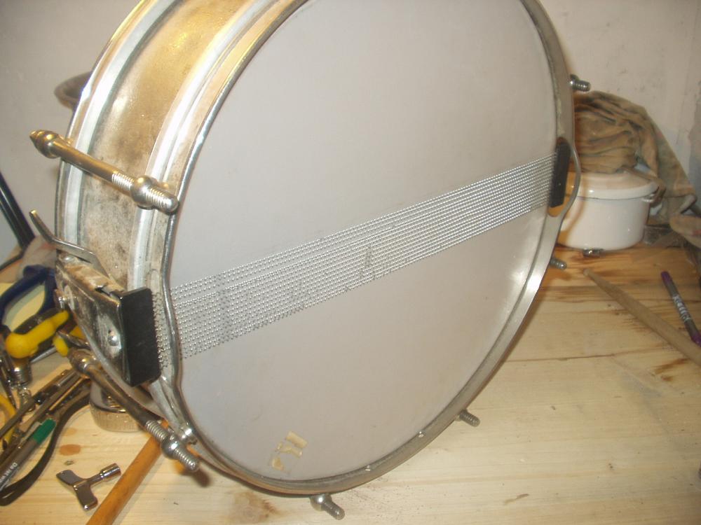 The German companies all made traditional drums like this, ----shallow snares ,often used for marching,with floating heads, until quite recently, so there are quite a few around ,in parts of Europe. In order to tune them properly , the heads have to have an equal tensile strength or even better, a heavier bottom than top head , otherwise the snare head will overtension. This wasn't much of a problem , until plastic heads came along , with most of these drums being fitted with calfskin anyway, which can be tweaked a little easier but then needing tweaking more often, too. The top only tuners, made a quick tune easy, even while marching and lot of them came fitted with permanent handled T-rods. Many of them had 6 points of adjustment and a simple throw or threaded snare control but this one is fairly top shelf.