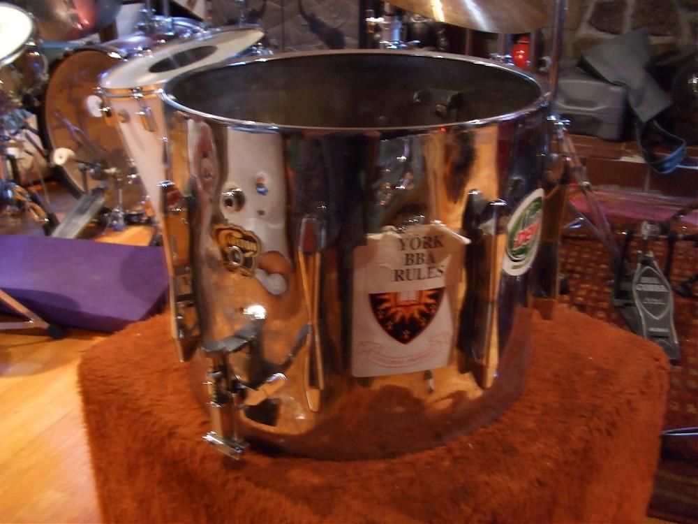 But it's a metal marching shell...so even all cleaned up and polished...with original hardware in functioning order.....worth maybe $75 on the used market. Unfortunate aspect is the dinged shell.