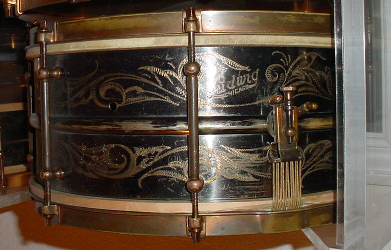 Here you go...the 4x14 on the left is a "deep cut" scroll that BB expert John Aldridge said that he has only seen two examples of...maybe a substitute engraver that day? The next two (4x14, 5x14) are similar and the 6.5x14 is a different style of scroll (notice that the "Ludwig Chicago" is in the lower panel)...The the last 5x14 looks like a fancy scroll...