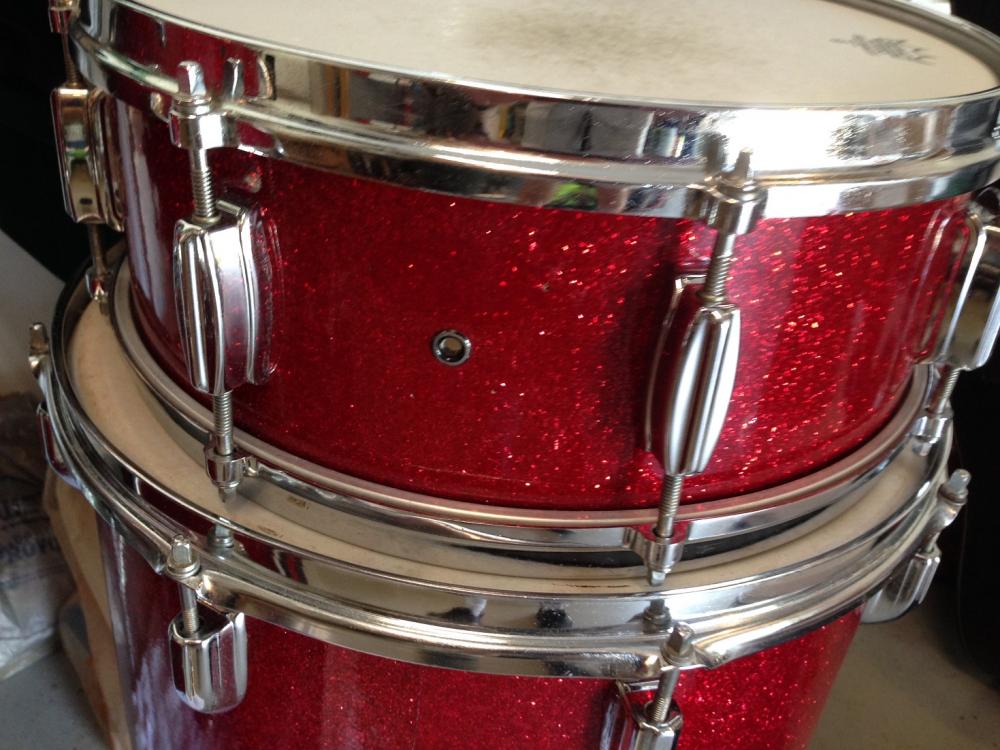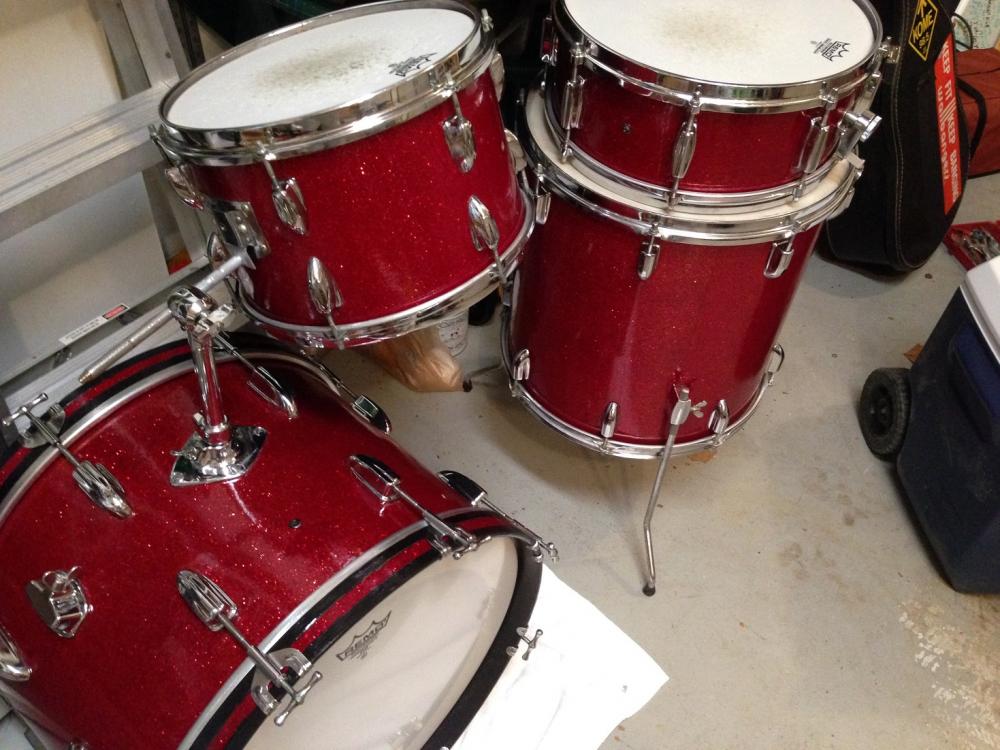 It has Luan shells with nice re-rings, stick savers hoops on the toms; die cast hoops on the snare (8 lugs); wooden bass hoops with nice t-rod handles. The chrome is excellent and the kit has been well taken care of. The wrap does bunch up a little of near a couple of the bass lugs, but isn't too bad.