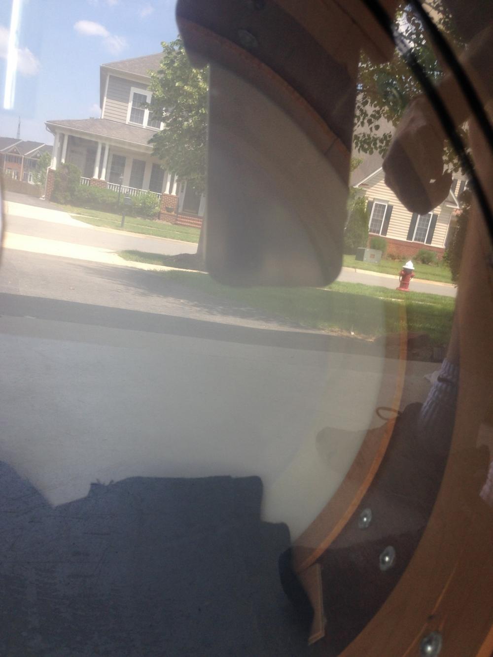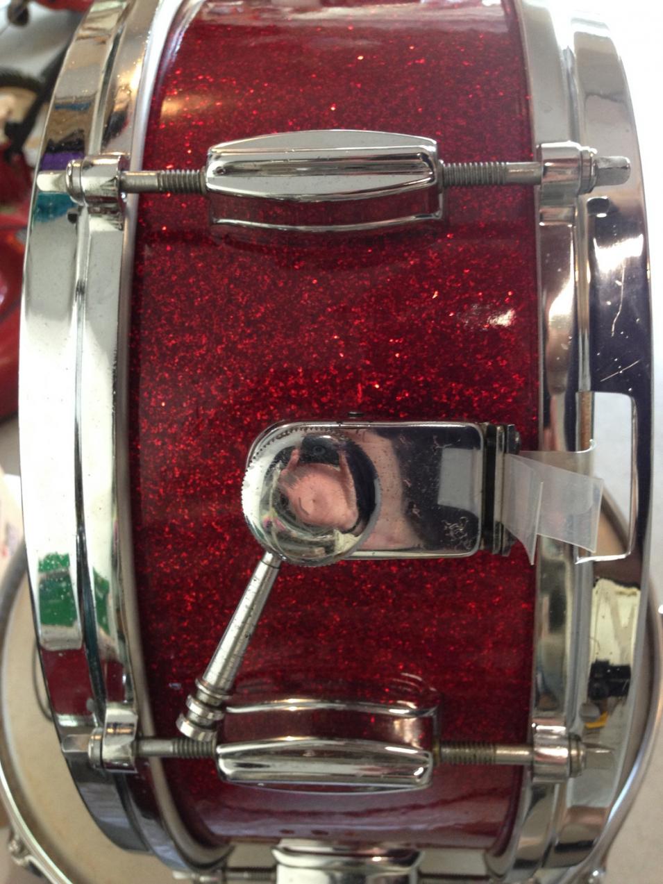The bass has probably been doctored I am guessing with additional re-rings in the center as well as pieces of wood where the spurs go through for extra support.