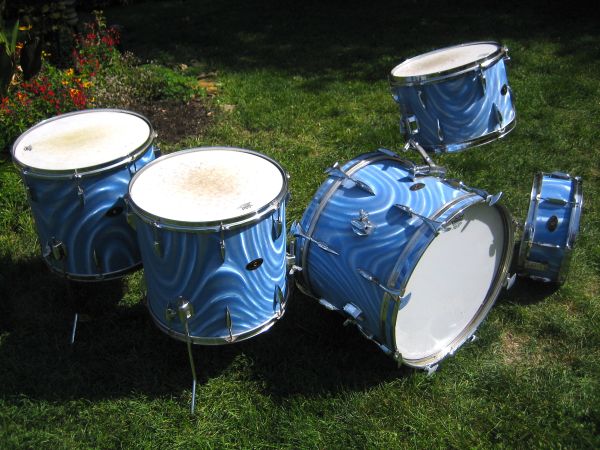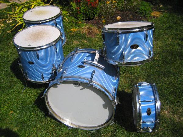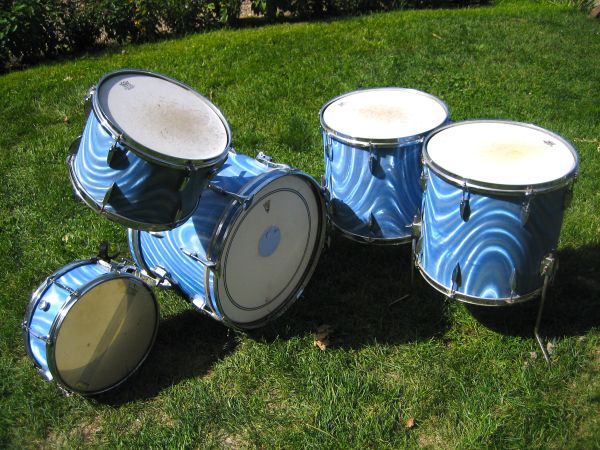 This is a vintage Apollo drum set from the 1960's. It has a blue satin swirl finish (like an old 3d baseball card). Its really cool. Apollo drums were an inexpensive Japanese drum company but this would have been their high end set at the time. I teach drum lessons and used this as my drum set for years simply because I like it a lot. Now I need the space, so some drums have to go. There is some rust and scratches as you might expect on a drum set this old but everything is there and sounds good. The bass is 20", high tom is 13", snare is 14" and there are two 16" floor toms. This is just for the drums, no hardware. Call xxx-xxx-xxxx if interested or have questions.