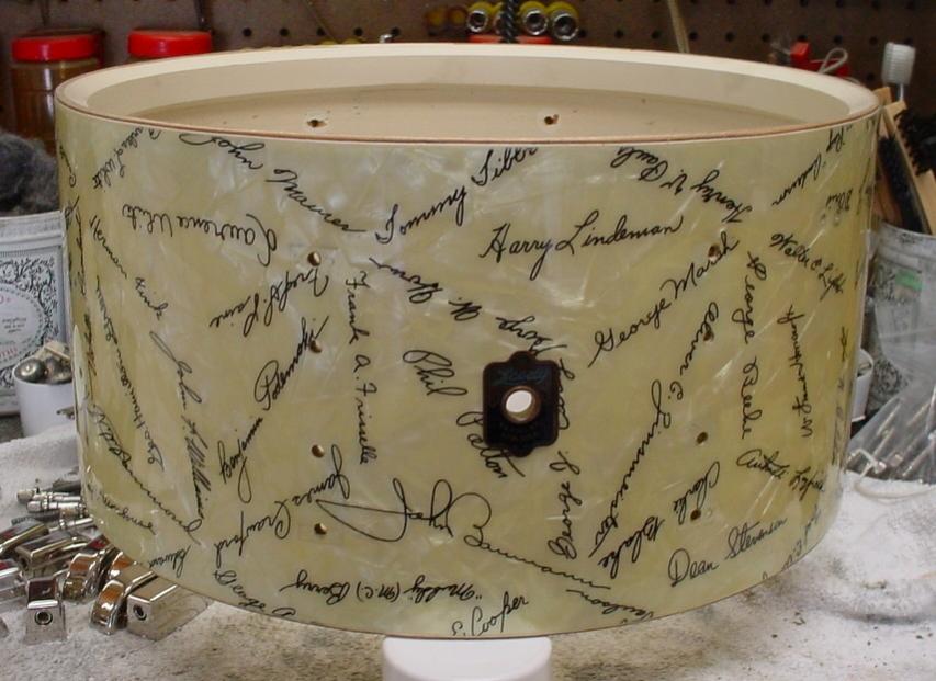 1940 LEEDY 7 x 14 BROADWAY STANDARD “SWINGSTER” MODEL #624 (SPECIAL ORDER/ONE-OFF MARINE PEARL/AUTOGRAPHS of the STARS)