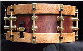 olive ash burl veneer on the hoops and a rich bubinga veneer on the drums.
