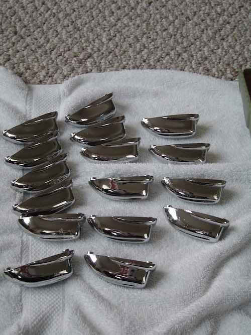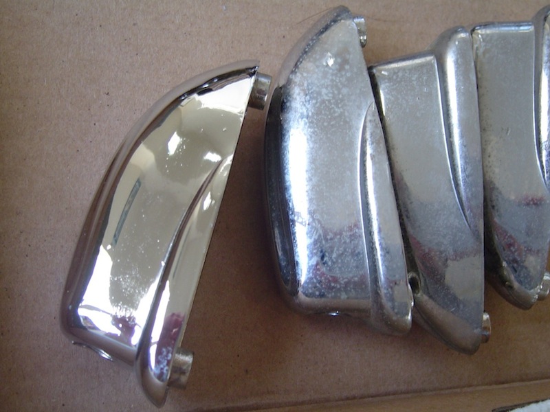 I've been working on a Slingy bass drum restoration project for a while now and figured it was time to update. Here are some pics of lugs and hoops before and after restoration. For the lugs (and T rods and hardware) I first cleaned with some dawn dish soap to try to remove some of the grime that has built up over the last 50 yrs :). After, I used some Turtle wax chrome polish/cleaner and elbow grease to give it a nice shine. I was surprised at how well the rust and gunk were removed. The first pic shows the condition of the lugs before cleaning and the second pic shows after. The third pic is a close up of a cleaned lug (on left) and uncleaned lugs (on the right). To restore the hoops I first sanded down areas with chipped paint and then used some of the fine grade steel wool to rough up the rest of the hoop. I then applied 2-3 coats of the Rustoleum shiny black laquer. Overall I'm pretty happy with the results :). The fourth and fifth pics show the hoops before and after. Still working on filling some holes in the shell (19 down 1 to go!) and patching wrap as we speak. Pics to follow soon!