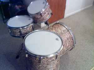 Beverley kit alert... there's one on Craigslist Chicago. I have no idea what this wrap is called and the seller claims the floor tom is a metric size, hard to find a head for. Asking $500
