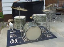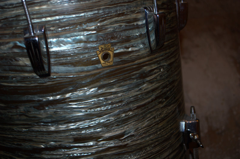 Here is my new kit. As far as I can tell it's a blue oyster kit(20/13/16 and Supra) that basically has a lot of green hues in the finish. I got these off the original owner who bought them off the floor sometime in 65-66? He played a lot of gigs and this man really cared about his gear and these drums. My first question is what makes a Ludwig Super Classic kit?-is it always the configuration of 22/13/16? Another thing I'm wondering is the serial numbers-this kit was bought as a set but the BD has no serial number on the tag-the 13" is 100898 and the FT is 143884. The snare is 304445 so obviously came later. Was it normal around the start of serial numbers to have a preserial tag I.E no numbers with a matched kit? All the interiors and wrap are aged identically and all have the BB bat mufflers however the tom has a square red felt and the FT is a square white felt. All the tom mounts and BD mounts are cast with the wing nut(no eye bolts) This appears to be a factory kit but would'nt the serial numbers be consecutive? I've included some pics. Any help would be appreciated on the serial number question and if the SKB came in different hues as this one almost appears green possibly due to aging?