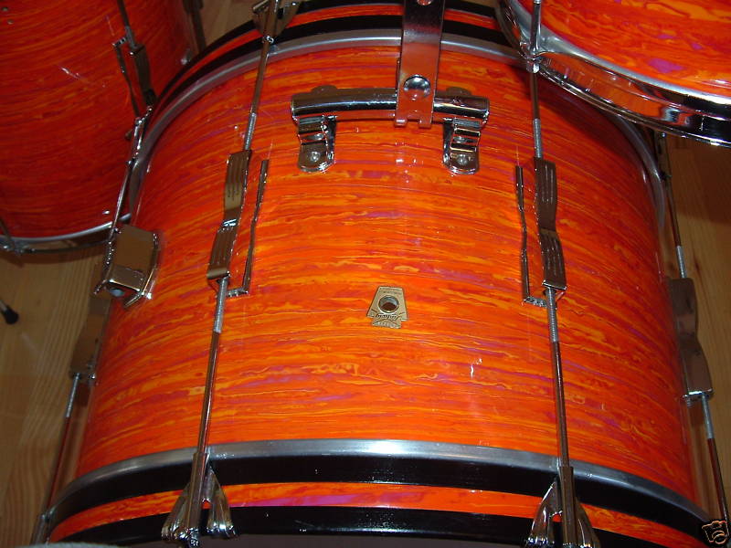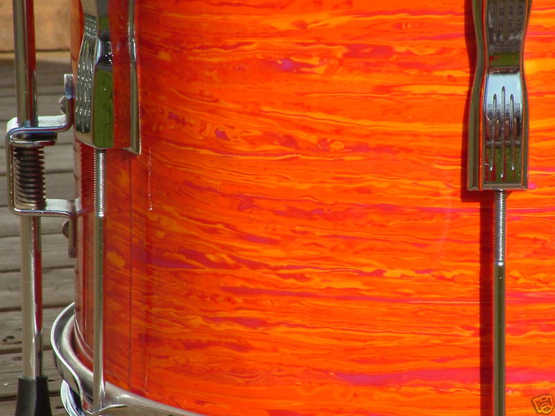 The snare is a 2005. So what, they picked up the Gawd Awful Orange, and decided to rewrap some poor, unsuspecting shells that weren't doing anyone any harm, prolly a nice, Gold Sparkle, just hanging out, waiting for a matching snare to come along take them out for gig....