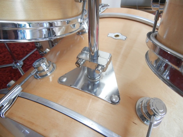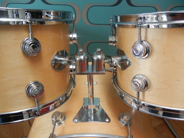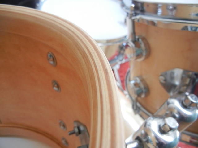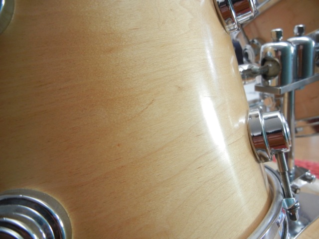 The bass drum has a coated powerstroke III and smooth sigle ply on the front.