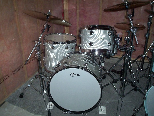 My first kit, 1983 Ludwig Rocker? (it has the classic lugs and 4ply maple shell) 22,12,13,16 ..now in black oyster pearl. I still have it