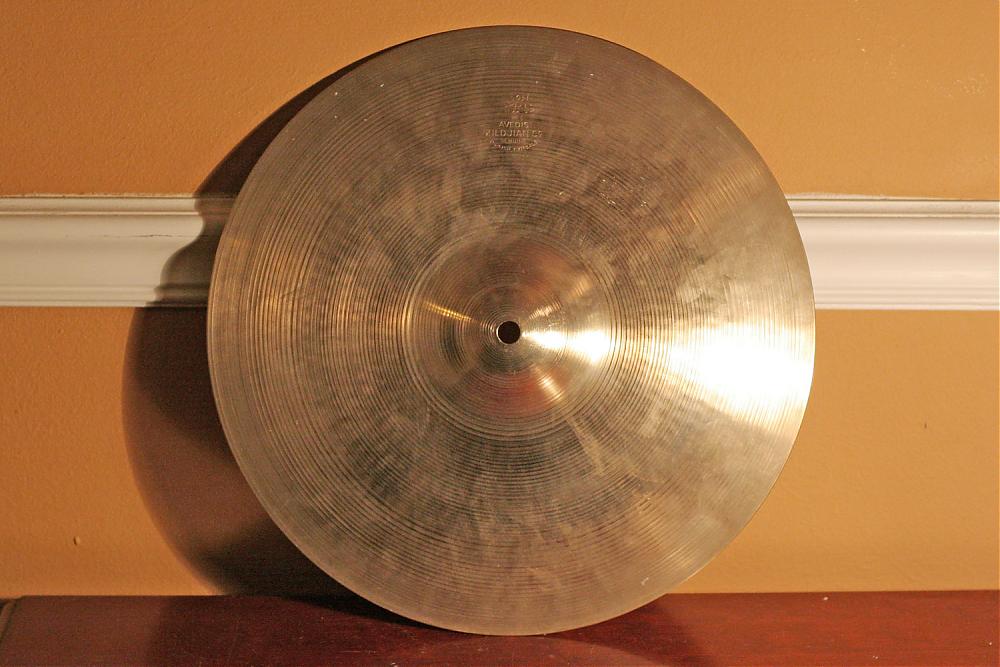 The now 17" though was originally 18", but had an accident with the cymbal-stand slowly sliding while playing, and toward the edge of the drummer's stage till stand and cymbal toppled over. Hit the concrete floor edge first (missed the bass player's foot by an inch; would have had the effect of an axe If it had hit) and cracked, bent horizontally some 5mm from the edge.