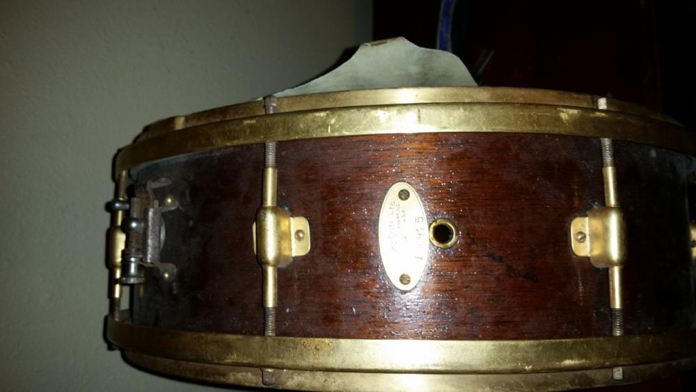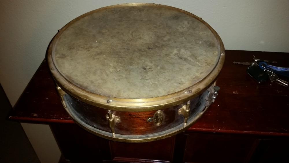 This my first time on the forum and would like to tell everyone hello. I have a early 1920s C.g. Conn snare drum. It is the victor model with knobby gold hardware with a early ludwig strainer. It was changed at one point to the vertical hole ludwig strainer