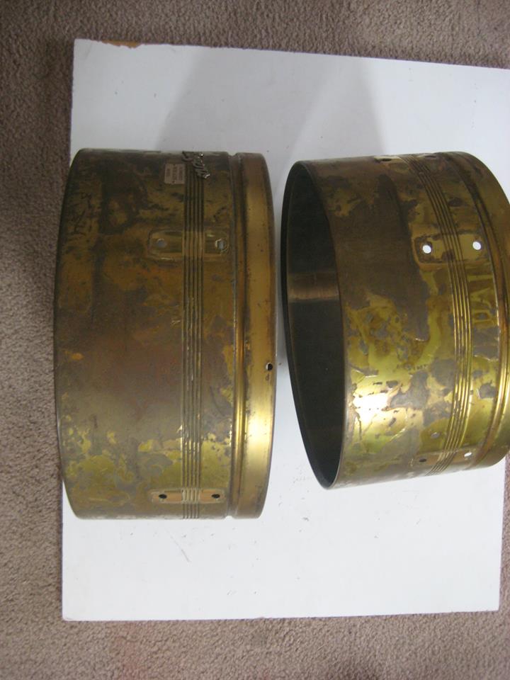 Cleaning them up is a job. For those timbales the best thing to clean them is buffing compound. Brass polish does nothing to them due to the heavy coat of lacquer they used to put on them.