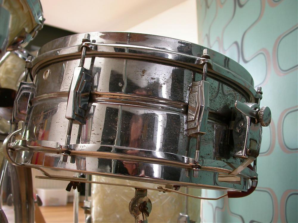 Attached some more pictures. As you will notice, the snare is a copy of a Supraphonic. The whole kit was in very nice condition except the snare. The picture shows how I bought it. Once cleaned up it was nice and shiny but sound-wise it was surely not a Ludwig,...