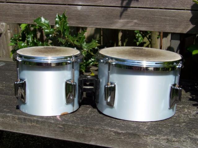 I guess they are the 8502 model Concert stick bongo's that are found in the mid / late 70s catalogs. Color will be metallic white, I guess.